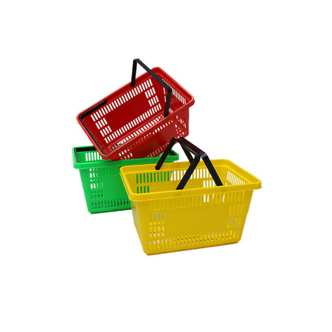 Doble mango de metal plástico rojo supermercado cesta de la compra precio producto de alta calidad